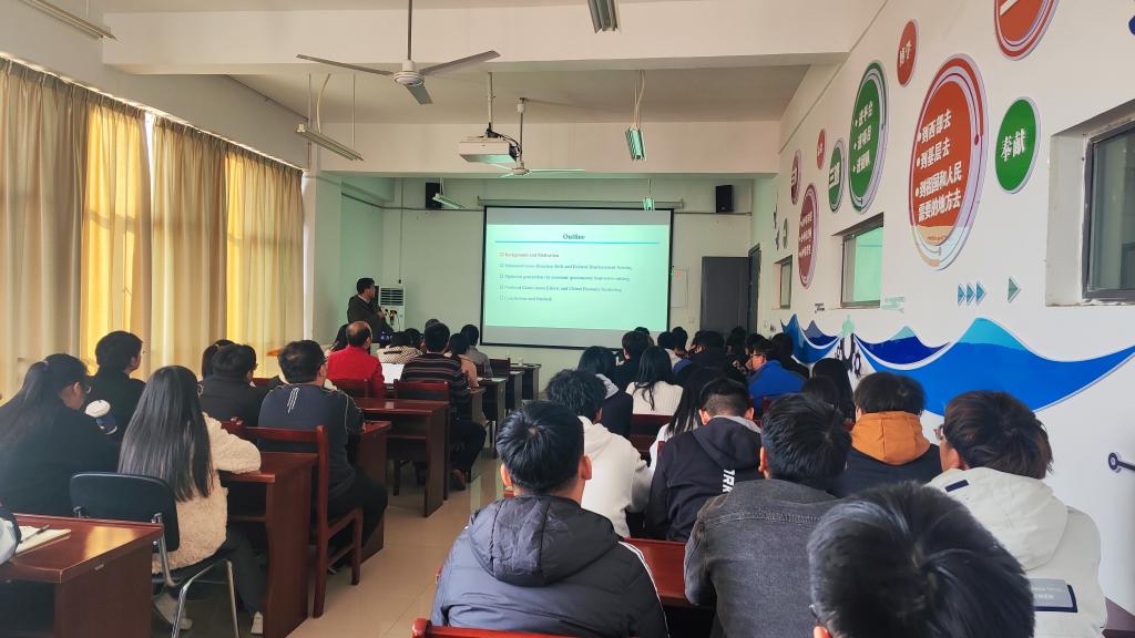院长王群主持,学院部分青年教师、研究生、本科生共计60余人参加了报告会。