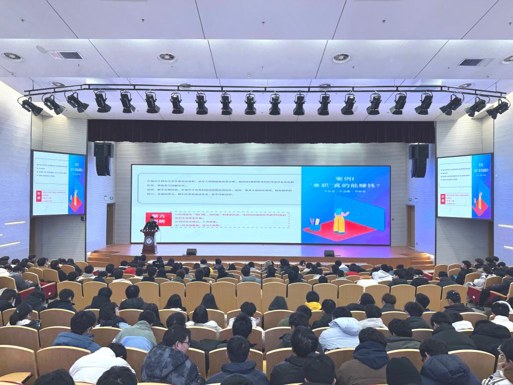 联合春晓街派出所在舜耕会堂开展防诈安全专题讲座,讲座由学院学生工作负责人主持,春晓街派出所王警官、李警官,学院辅导员,2023级全体新生共计300余人参加讲座。