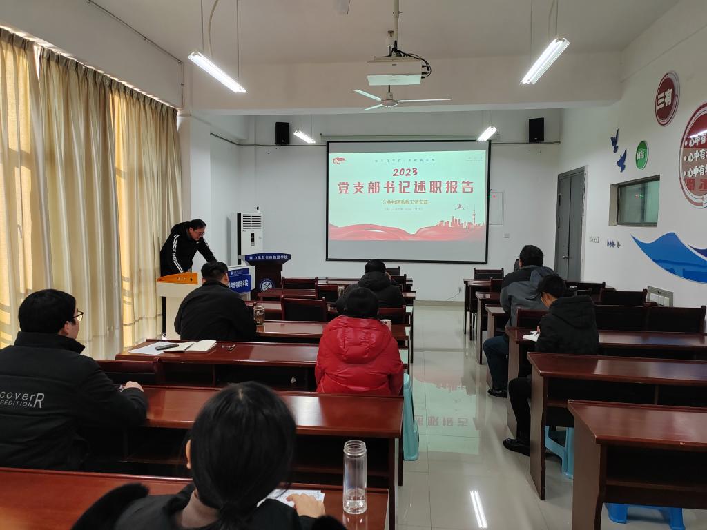 5个教工党支部书记和3个学生党支部书记依次述职汇报。他们围绕学习贯彻习近平新时代中国特色社会主义思想主题教育开展情况及成效、推动落实2023年党建工作要点、以党建引领学科建设和人才队伍建设、教学科研发展等重大任务落实情况进行了述职。