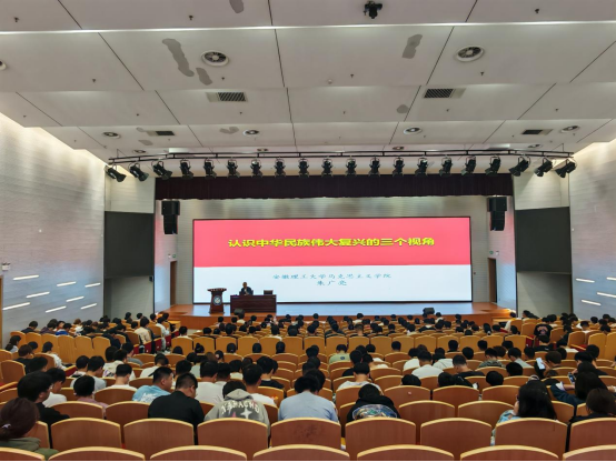 10月10日晚,马克思主义学院院长朱广亮教授围绕建成社会主义现代化强国这一核心主题,分别从“中国是有颜色的”“中国是有形体的”“中国是有身份的” 三个独特视角出发,详细解读红色中国、领土属性在近现代的转型历程以及作为发展中的社会主义大国的相关情况,深度阐述中华民族伟大复兴之路。