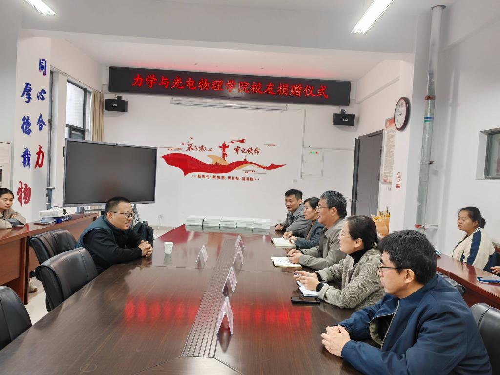 学院常务副院长高娟对校友张京青的到来表示热烈欢迎,感谢他长期以来对母校事业发展的关心和支持,并向校友介绍了近年来学校、学院发展现状、专业建设、师资队伍、科研平台、人才培养等方面的基本情况。副院长卢小雨对工程力学专业的发展进行了重点介绍,对张京青的捐赠表示感谢。