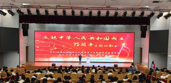 在舜耕会堂成功举办“庆祝中华人民共和国75周年”主题红歌会。学院党委副书记郑孝莲、教师代表、学生组织代表以及2024全体新生总计400余人参加了本次活动。