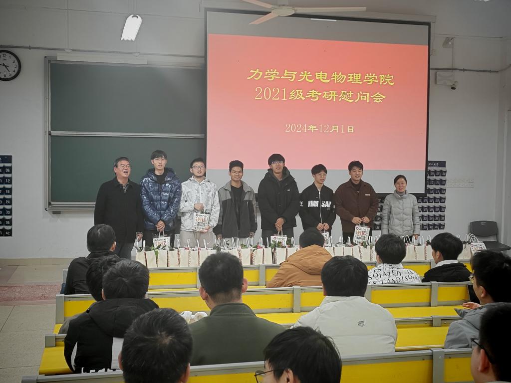 在明理南112教室举办考研慰问大会。学院党委书记孙东升、党委副书记郑孝莲、2025届毕业年级辅导员参加慰问活动,共同为考研学子送上温暖与祝福。