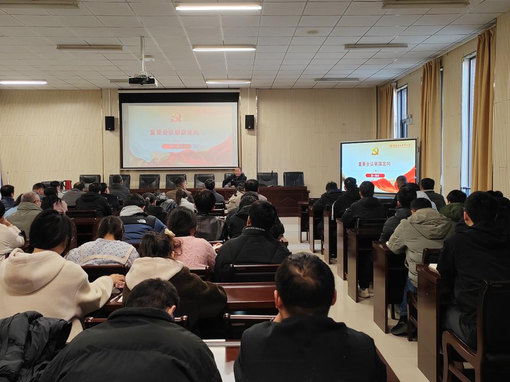 党委在明道楼一楼报告厅开展党史学习教育专题培训暨党委理论学习中心组(扩大)学习会。学院全体师生党员参加学习会议。会议由学院党委书记孙东升主持。