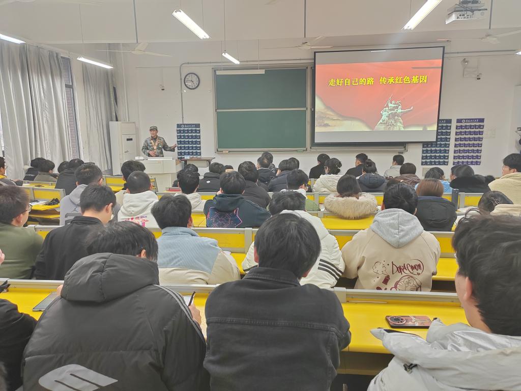 在明理南204教室举办爱国主义教育暨战斗英雄事迹报告会,院关工委邀请对越自卫反击战战斗英雄刘强作报告。学院全体师生党员参加会议。会议由学院党委书记孙东升主持。