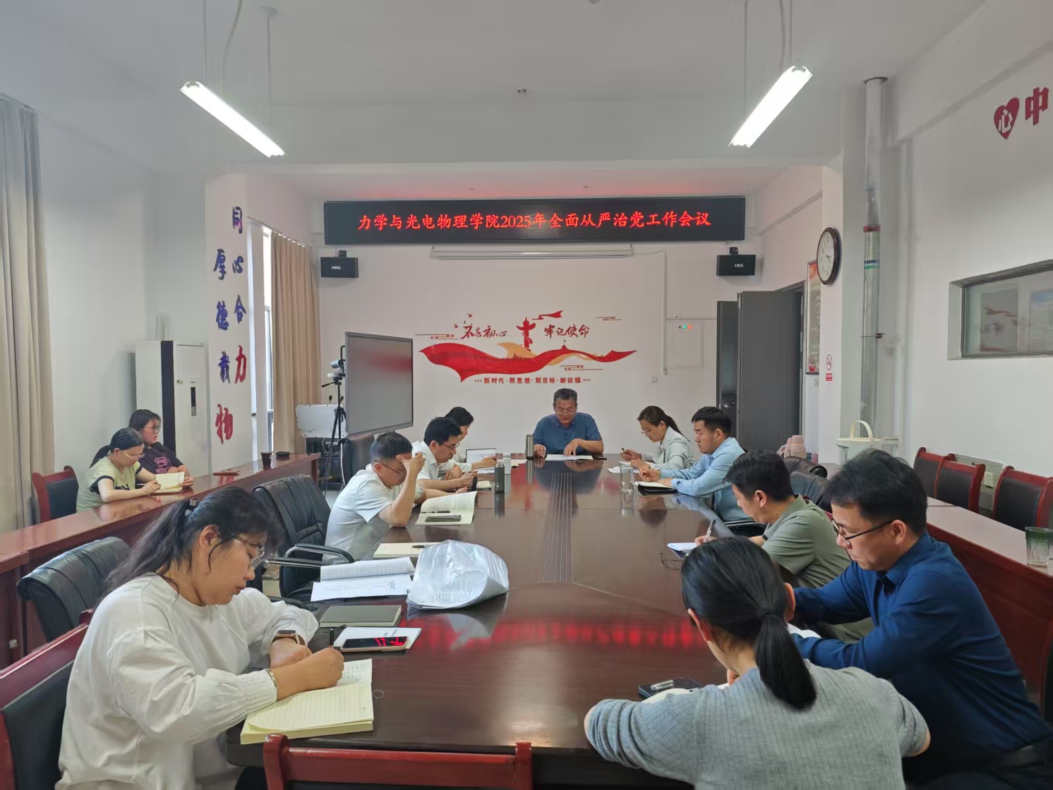 在明道楼A320召开2025年全面从严治党工作会议,会议由学院党委书记孙东升主持、学院领导班子成员、各支部书记、系主任、院办秘书、辅导员参加会议。
