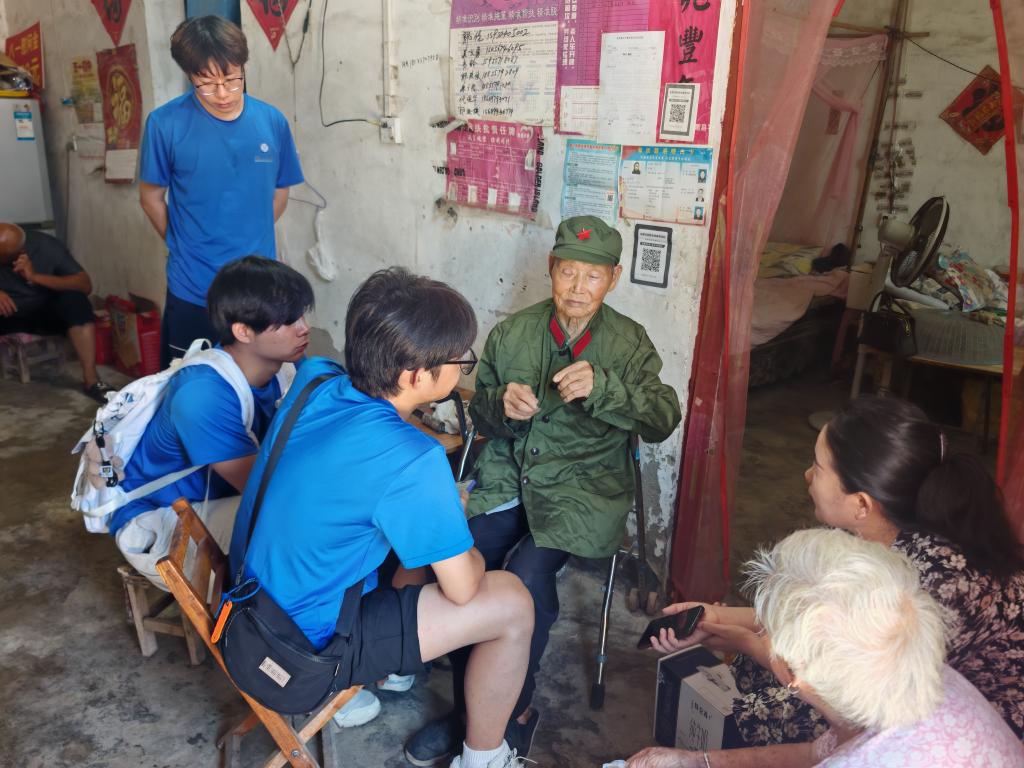 7月5日,实践团在王寨镇退役军人服务站刘敏站长的带领下,拜访了现年94岁的抗美援朝老兵郭吉宣。老人讲述1951 年入朝作战时冒死抢运物资、被战友从弹坑救出的经历,泪光中尽显赤诚。刘敏介绍,王寨镇退役军人服务站始终践行“让退役军人受尊重、让军人职业受尊崇”理念,从政策落地的 “最后一公里” 到生活冷暖的 “细微之处”,用实打实的行动为退役军人做好各项服务工作。