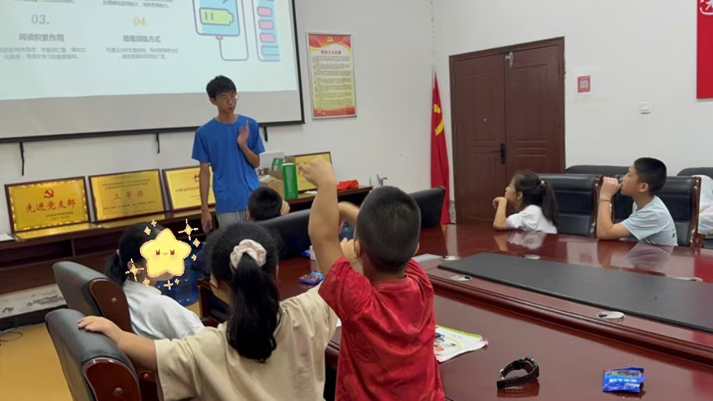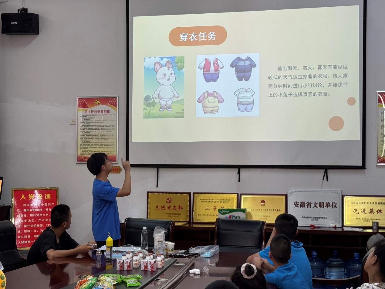 为增强孩子们的安全意识,7月11—12日,志愿队开展“安全童行·守护成长”主题讲座。通过动画短片、情景模拟和互动问答,生动讲解了防溺水、火灾及地震逃生等实用安全知识。孩子们认真聆听,积极模仿“火场逃生”的正确姿势,在“防溺水”问答中踊跃发言,现场气氛热烈。寓教于乐的形式配合零食、文具奖励,有效将安全知识烙印在孩子们心中。