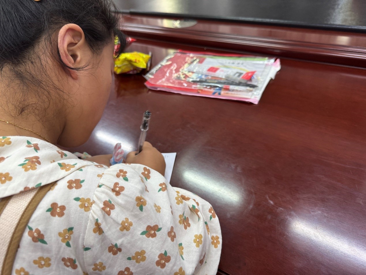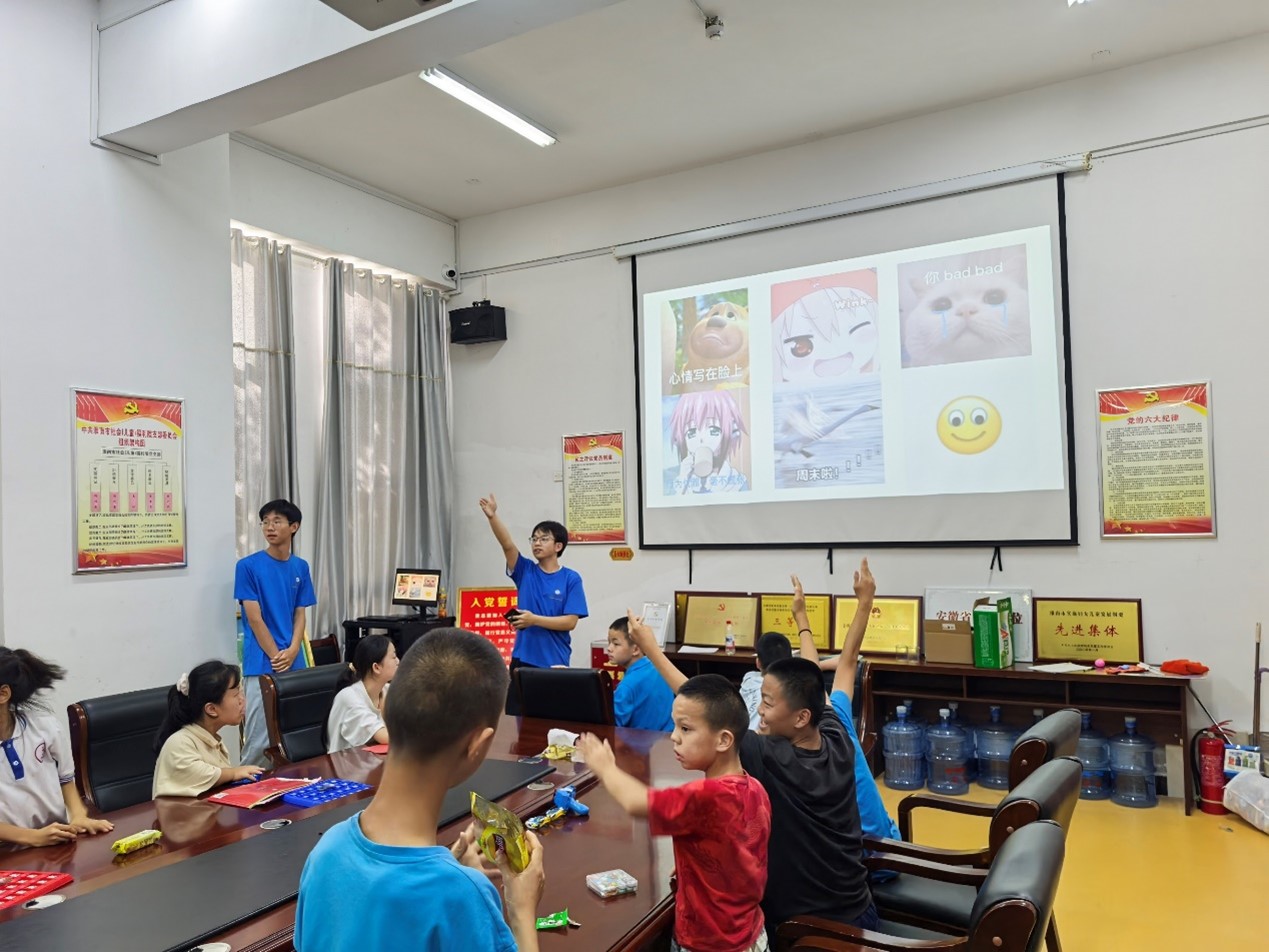 7月5日—6日,志愿者们精心组织开展了心理小课堂活动。他们用通俗易懂的语言,向孩子们讲解情绪的产生、影响以及日常调节方法,帮助孩子们科学认识自我情绪,建立对“情绪管理”的基础理解。课堂设置了互动环节,围绕“常见情绪场景”、“温和表达方式”等话题引导孩子们主动思考、积极发言,并对主动分享的孩子给予文具奖励等,现场气氛活跃。活动有效帮助孩子们学会正视情绪、合理表达感受,为培育健康心态奠定了基础。