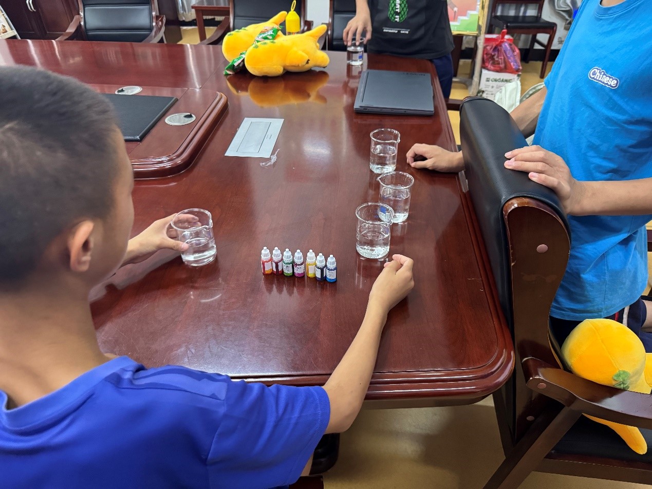 7月7日—8日,志愿队带来了充满趣味与知识的科学实验活动。“彩虹雨”、“筷子提米”等实验让孩子们跃跃欲试。在志愿者规范演示和讲解后,孩子们亲自动手操作,观察色素沉降、体验摩擦力的神奇。待孩子们完成操作、观察到实验现象后,志愿者结合生活实例,用浅显的语言解释背后的科学原理。这种“观察—操作—理解”的体验式学习,有效激发了孩子们的科学好奇心与探索欲,也锻炼了他们的观察力和逻辑思维。