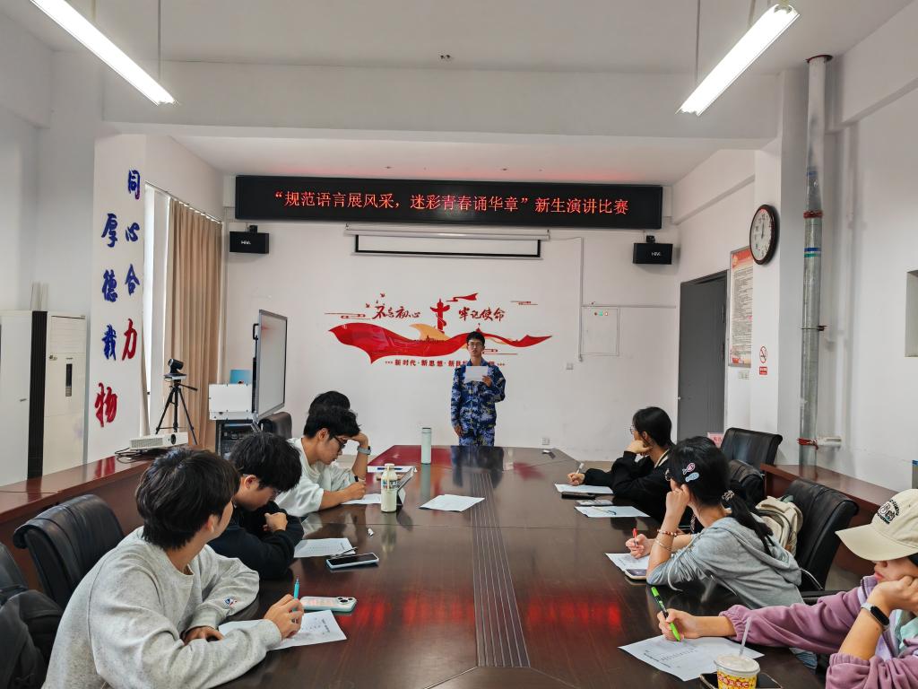 9月21日,学院在明道楼A320举办“规范语言展风采,迷彩青春诵华章”新生演讲比赛,10名2025级新生结合大学初体验与军训感悟,以标准流利的普通话表达对青春、梦想和家国的思考。