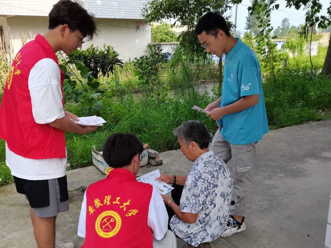 奉献青春力量,助力文明创建。顶着炎炎烈日,行走在田间地头、村头巷尾,队员们派送党史知识宣传单、普及文明行为规范、维护环境卫生,通过与村民进行亲密交谈,了解他们对乡村建设的满意度及对乡村振兴战略的了解状况,同时,积极开展防诈骗以及普法等宣传工作。