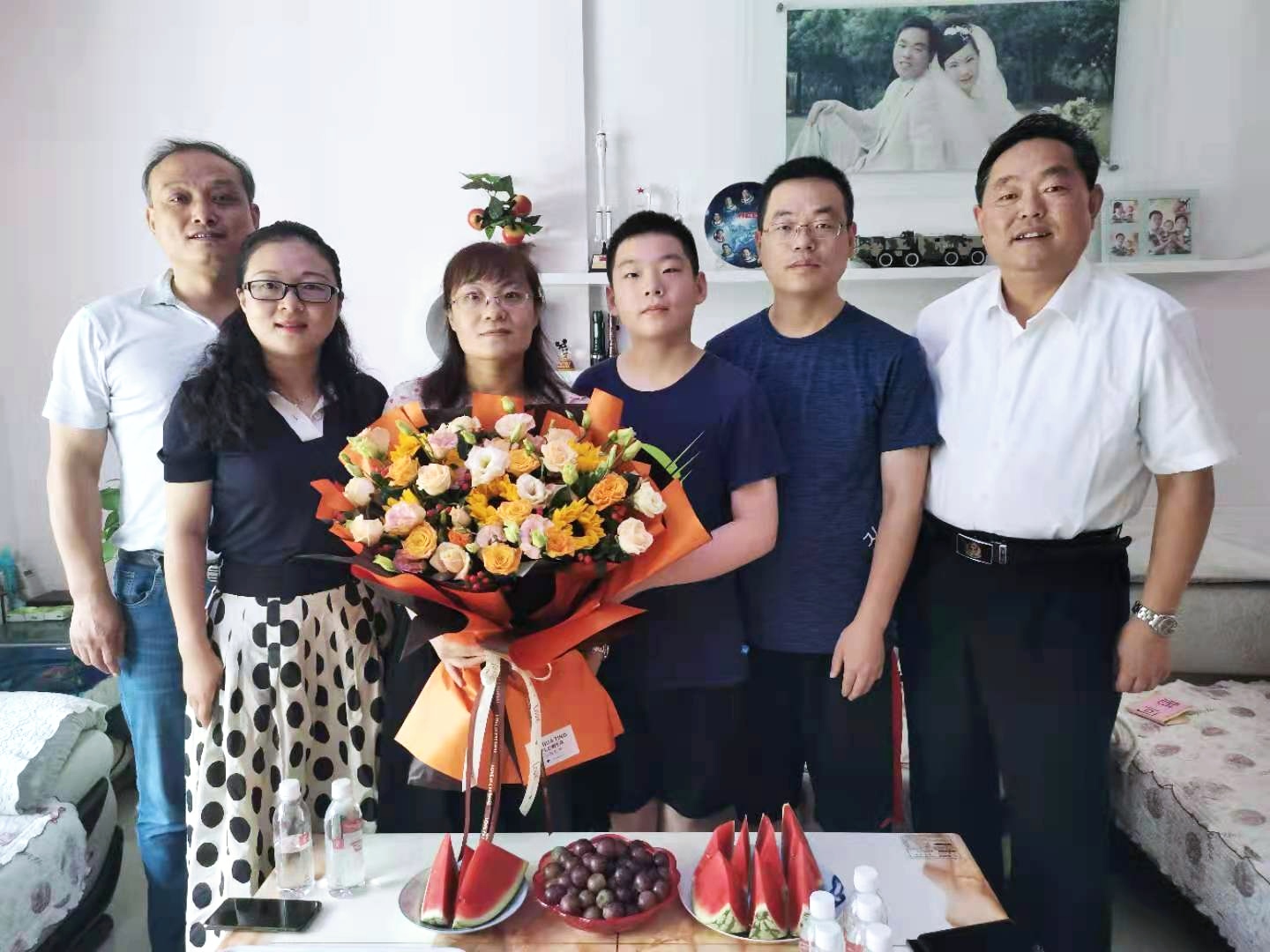 方运纪、刘艳与祝家光、崔智丽一家人亲切交谈,详细了解他们的工作、生活和子女教育、老人健康等情况,表达了对军属和军人的关切之情,并表示学校、学院将切实做好关心现役军人家属工作,积极宣传落实好国家优抚政策,让现役军人在部队安心服役、报效祖国。