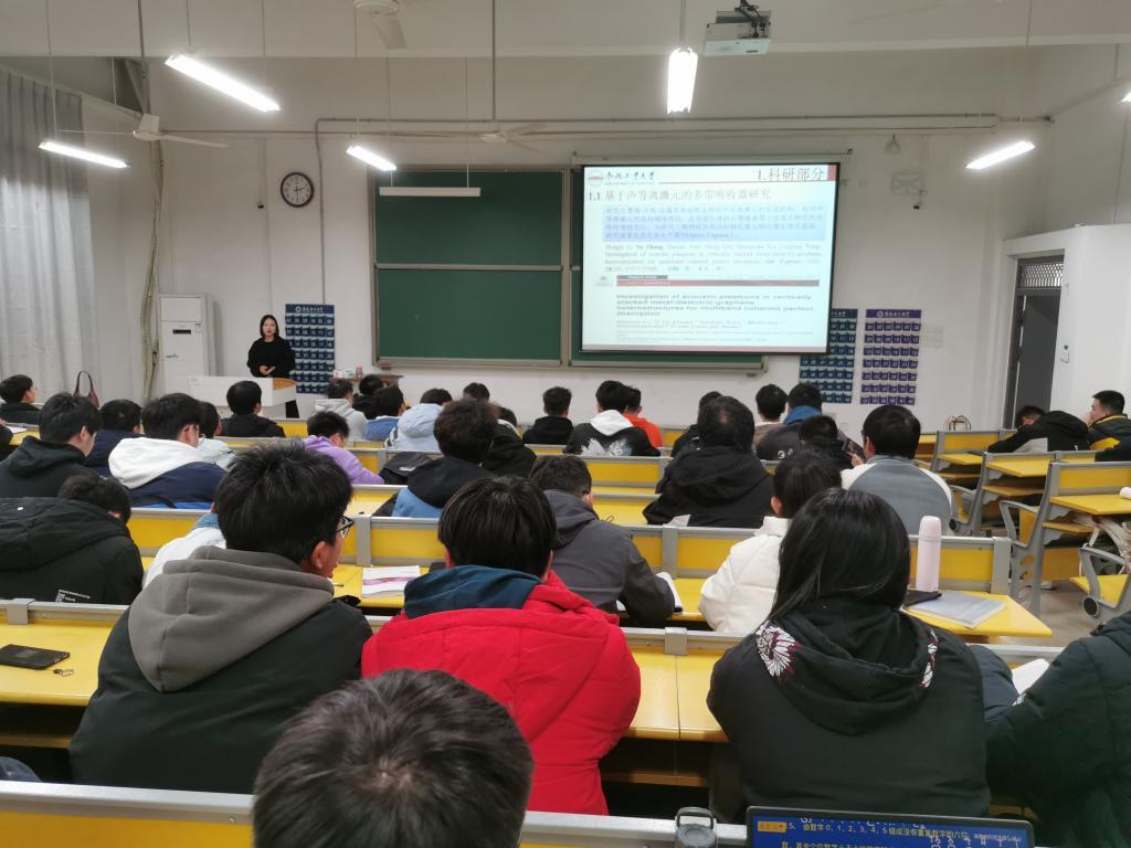 学生党支部在明理南106教室举办了“志存高远,逐梦前行”励志校友报告会,此次报告会邀请了我校2019届应用物理专业校友、合肥工业大学在读硕士研究生张玉回校交流。学院各年级100余人参加了报告会。