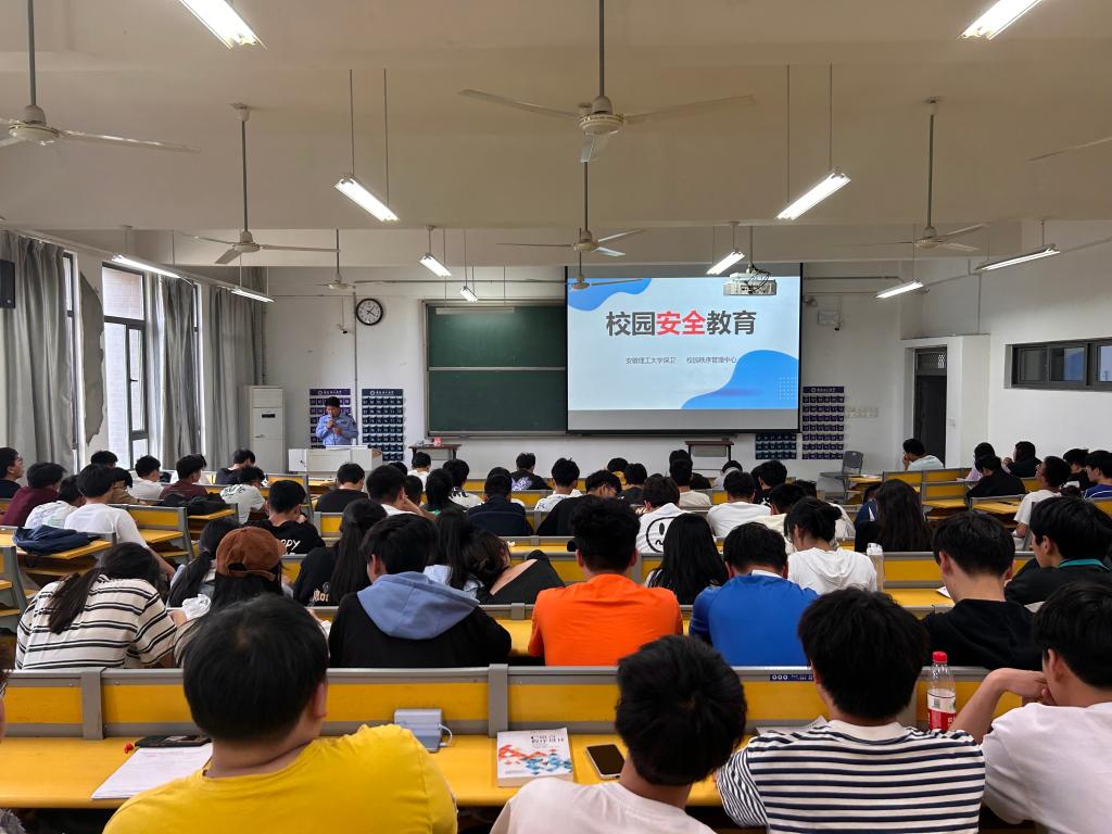 李飞队长从分析校园真实交通事故案例出发,提醒同学们骑电动车时要严守交通安全法规,按照要求佩戴头盔,不逆行,不超速,为自我与他人人身安全负责。随后,李飞队长结合实际工作中发生的典型案例,详细讲解了电信网络诈骗犯罪的类型、手段与特点,分析了电信诈骗的危害性与严重性,并根据不同的电信诈骗案件,提出了相应的防范建议。最后,结合5·12特殊背景给学生介绍了地震的基本常识和危害,以及在紧急情况如何有效地进行自救、避险等重要内容。