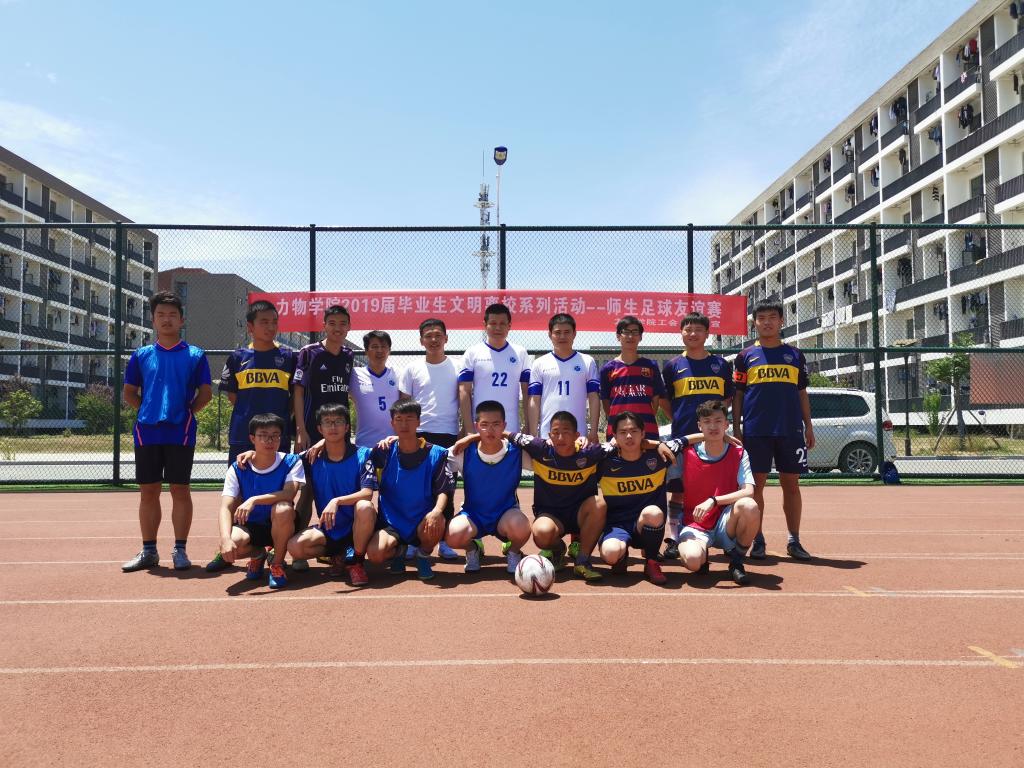 在义苑足球场举办毕业生文明离校师生足球友谊赛。学院教师代表和2019届毕业生代表参加了比赛。