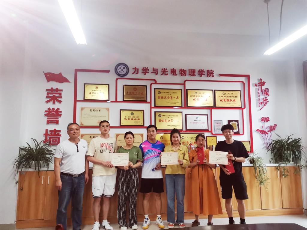 经过1天的精彩对抗和激烈角逐,比赛落下帷幕,共产生女子单打冠军刘美,男子双打冠军陈咏雷、段一名,男女混双冠军魏明启、陈晨,以及各项前三名。赛后院长圣宗强为比赛前三名以及参与比赛的同学颁发奖状和奖品,整场活动在欢声笑语中愉快地结束。