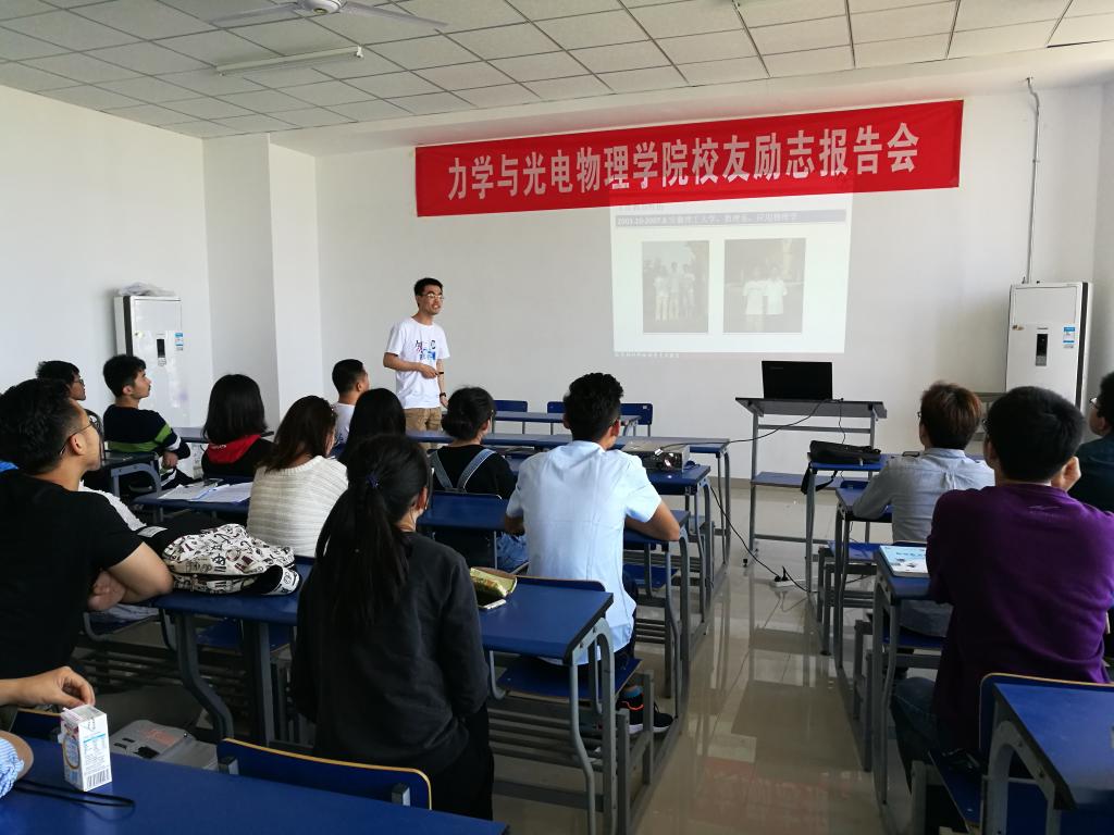 邀请2007届应用物理专业校友吴翟和武超在学院四楼报告厅举行校友励志报告会。