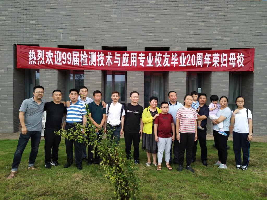 1999届检测技术与应用专业校友欢聚明道楼三楼学术报告厅,热烈座谈。学院党委副书记(副院长)张可佳、业务副院长圣宗强出席座谈会。