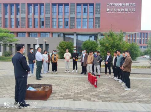 在学院楼前开展消防演练活动。学院党委副书记孙东升主持,学院副院长高娟、部分教师和研究生代表参加活动。