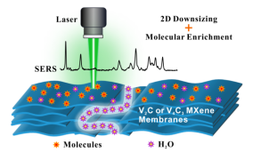 图1 柔性二维碳化钒MXene基滤膜的SERS增强效果示意图