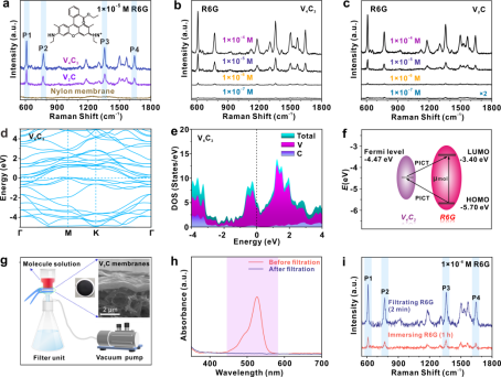 图2 柔性二维碳化钒MXene基滤膜的SERS性能和增强机制