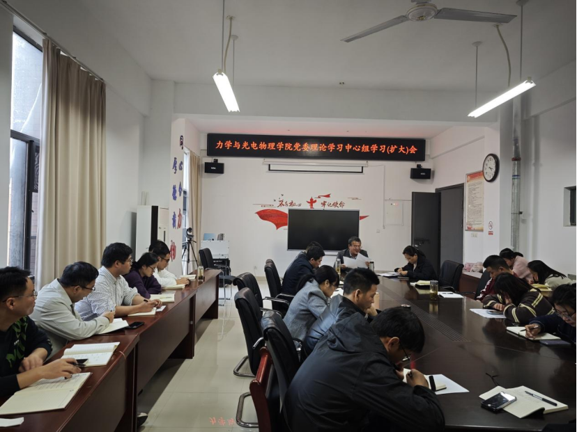 在明道楼A320会议室举行党委理论学习中心组学习(扩大)会。本次集体学习,围绕党的二十届四中全会公报、《习近平谈治国理政》、学习贯彻习近平总书记关于教育、科技创新、人才工作的重要论述,学习贯彻习近平总书记考察安徽重要讲话精神等主题进行深入学习研讨。党委书记孙东升主持学习会并作总结讲话,学院领导班子成员、党委委员、纪委委员、各党支部书记、全体辅导员、办公室秘书参加会议。