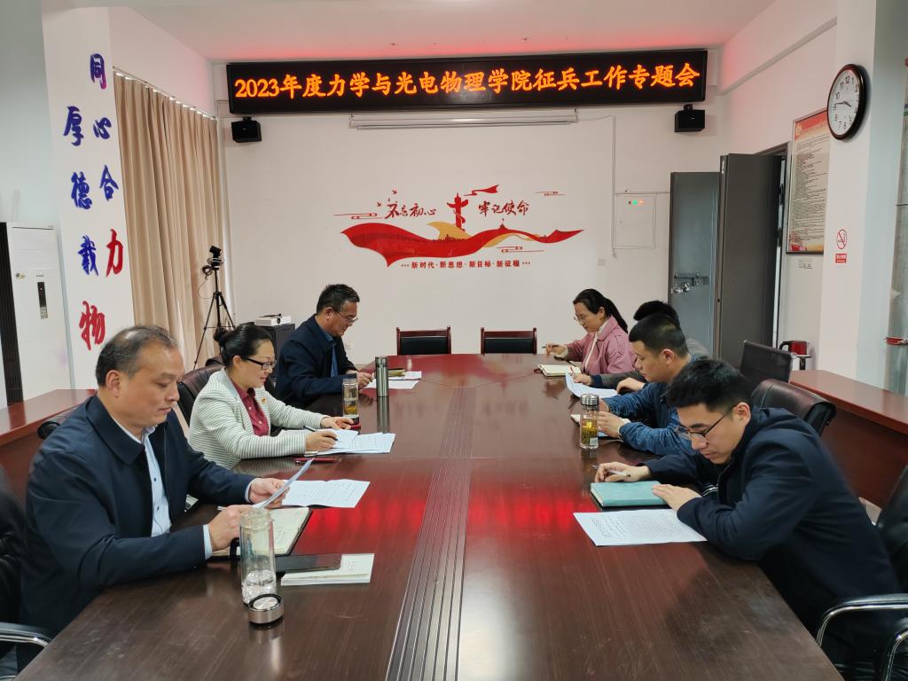 会议强调,一是要提高政治站位,深化思想认识,把征兵工作当成神圣使命和光荣任务来完成,把本科生毕业参军作为高质量就业途径之一。二是要精准宣传动员,激发入伍热情,充分发挥征兵工作联系人、毕业班辅导员、班级导师、毕业设计指导教师的作用,做好征兵宣传动员工作。三是要压实工作责任,用心用情、做实做细征兵服务工作,一人一策,深入谈心谈话,适时开展家访,确保征兵任务完成。