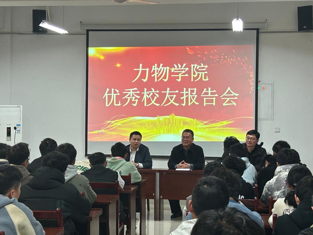 在明道楼A321报告厅顺利举行了优秀校友报告会。本次报告会邀请了两位工程力学专业优秀校友张伟和胡宝山给同学们进行经验分享。学院党委副书记孙东升、2022级辅导员和2022级工程力学专业新生参加此次报告会,报告会由孙东升主持。