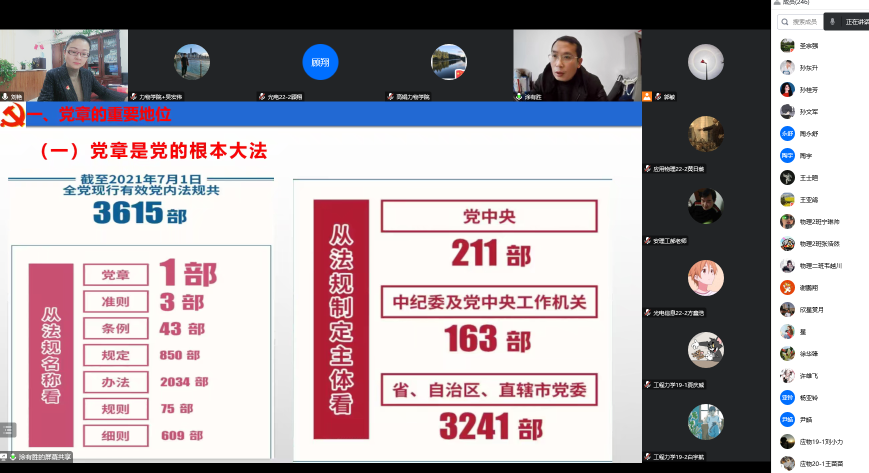 举办党的二十大党章辅导报告会,全院教职工和学生党员、学生干部等250余人参加线上报告会,报告会由学院党委书记刘艳主持。