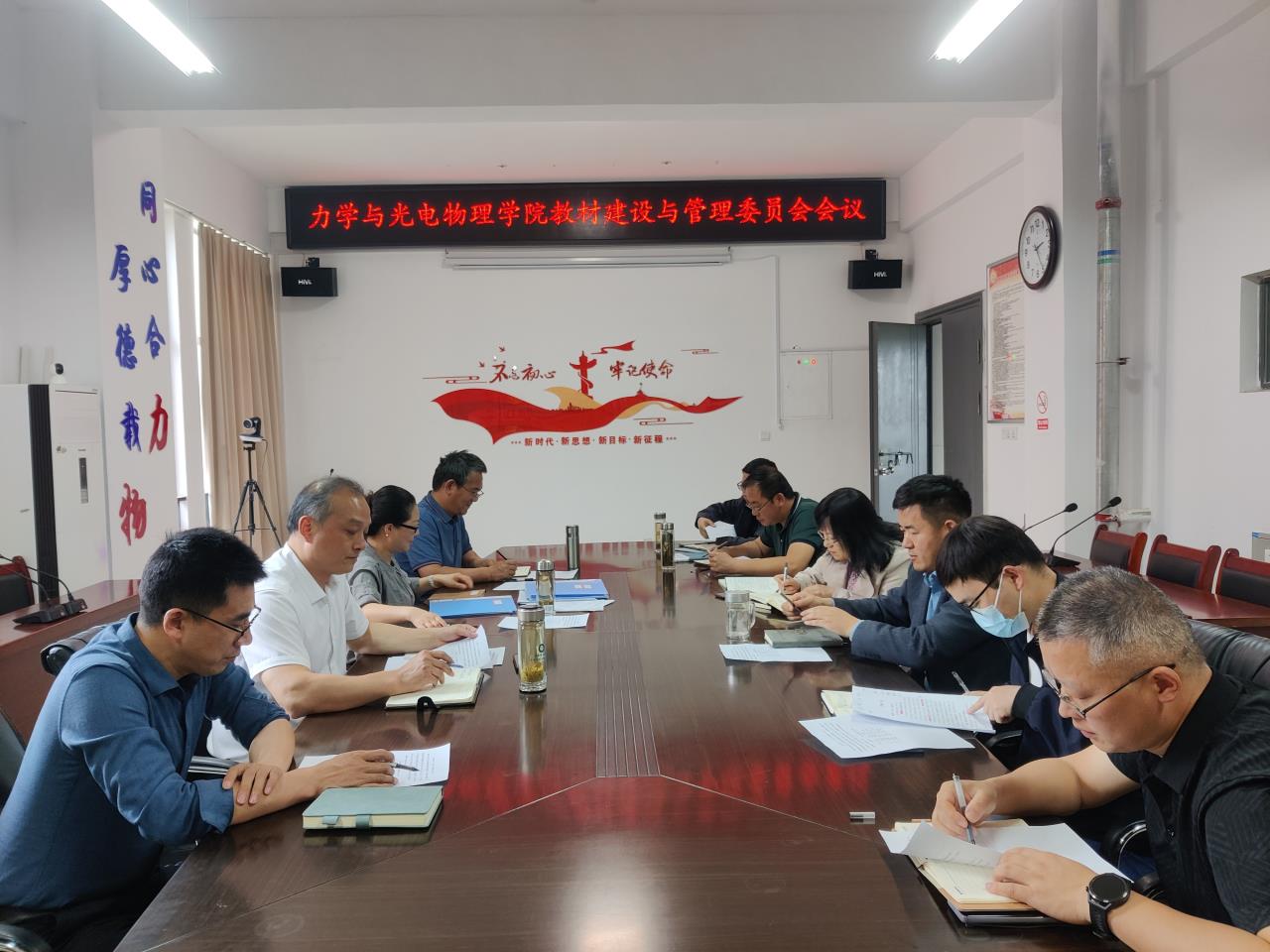 在明道楼A320会议室召开教材建设与管理委员会会议,对《大学物理(上、下册)》教材选用和《材料力学(上、下册)》教材编写人员进行评审,学院党委书记刘艳、学院教材建设与管理委员会委员等参加了会议,会议由副院长(主持工作)圣宗强主持。
