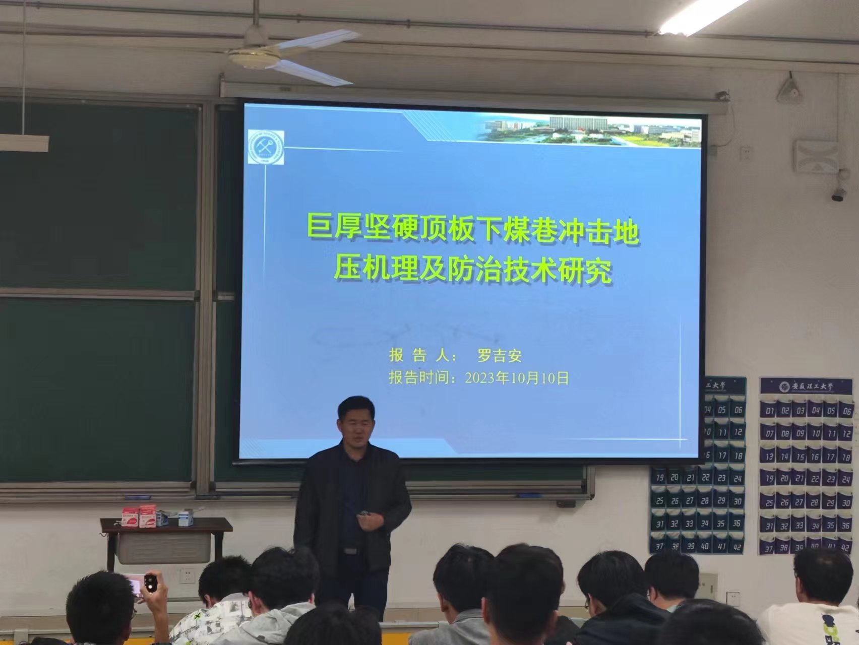 罗吉安以《巨厚坚硬顶板下煤巷冲击地压机理及防治技术》为题目,针对巨厚火成岩下煤层巷道冲击地压问题,介绍了冲击地压的影响因素及发生机理,对巨厚火成岩下煤巷冲击地压的防治技术进行了系统介绍。