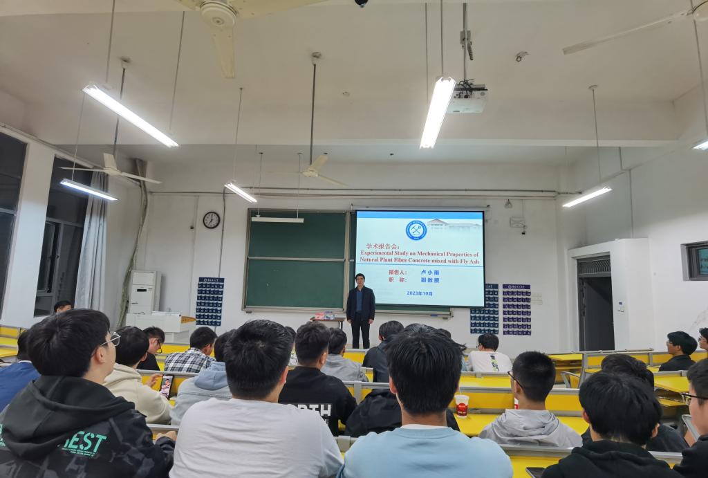 卢小雨做了题为《Experimental Study on Mechanical Properties of Natural Plant Fibre Concrete mixed with Fly Ash》的报告,向大家介绍了油菜秸秆纤维粉煤灰混凝土的力学性能实验,探讨了粉煤灰掺量、油菜秸秆纤维长度及体积掺量三种因素对油菜秸秆纤维粉煤灰混凝土力学性能以及微观结构的影响。