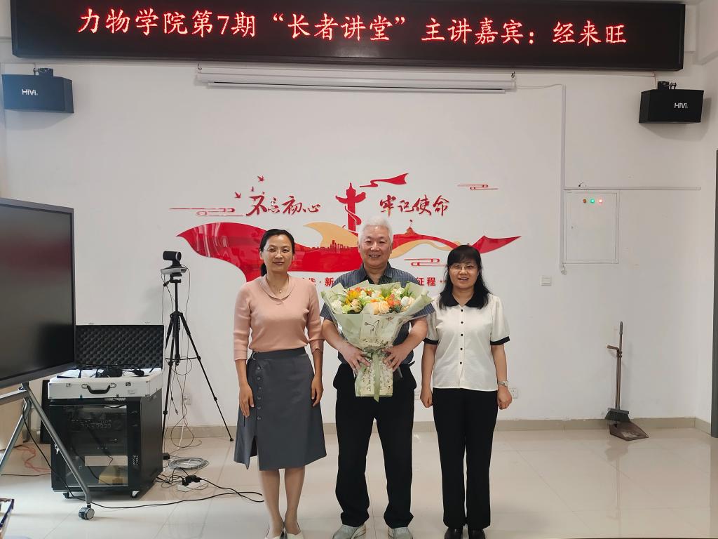 交流会后,学院常务副院长高娟、基础力学系主任崔智丽代表学院向经来旺教授献上鲜花,感谢多年来对学院及力学系的努力耕耘和默默奉献。