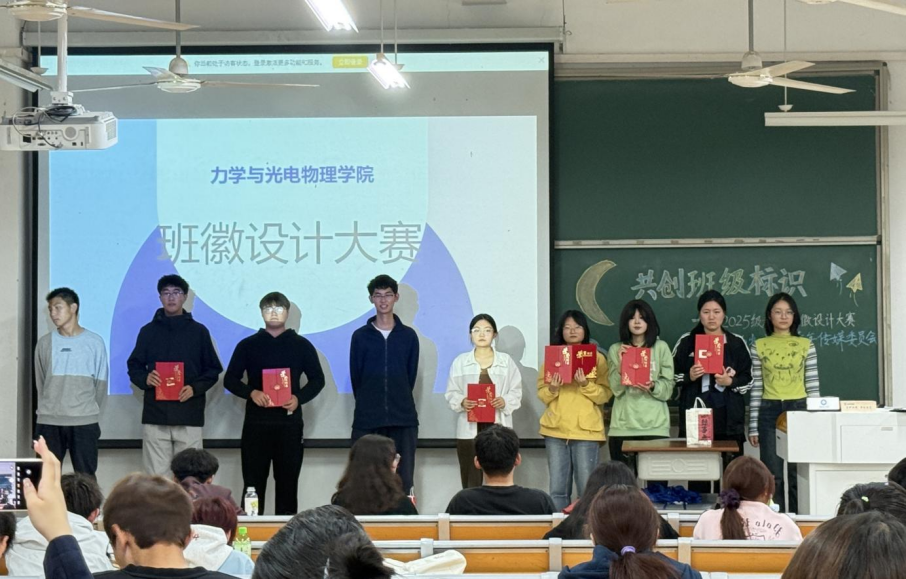 比赛过程中,各组作品风格多元、寓意鲜明。7号选手光电信息25-4班孙向薇同学的作品“瓶中星”以星星为元素,金色为整体背景,体现了其独特的创作理念。8号选手光电信息25-5班李雪纯同学的作品以力学齿轮为元素,融入校训及班级序号,体现学科特色与集体归属感。经过评委综合评审,最终光电信息25-4班、光电信息25-5班斩获一等奖;应用物理25-1班、工程力学25-2班等获得二等奖;工程力学25-1班、应用物理25-2班等荣获三等奖。