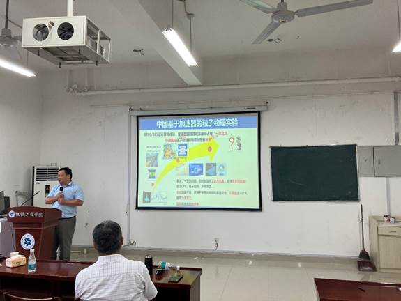 报告会上,彭海平教授从物质世界的基本构成出发,介绍了物质的最基本结构和相互作用,指出基于加速器的粒子物理实验是最有效的研究途径。其中在GeV能区的正负电子对撞机,运行在微扰和非微扰量子色动力学的过渡区域,是研究强相互作用色禁闭本质和精密检验电弱统一理论的不可替代的平台。随后引出了我国BEPCII以及BESIII在粒子物理领域做出的杰出贡献,并重点介绍了正在筹建中的超级陶粲工厂——STCF(Super Tau-Charm Facility)的大科学装置。STCF是质心能量为2~7 GeV、对撞亮度高于5x1034 cm-2s-1的新一代正负电子对撞机装置,有望在新型强子态、宇宙中正反物质不对称性、寻找新物理等前沿研究中取得重大突破,是我国粒子物理领域的一个重要选项和机遇。彭海平教授指出STCF将会成为世界高能物理五大中心之一,并介绍,经过了10多年的努力,目前已完成了STCF可行性研究和概念设计,并在关键技术攻关取得重要进展。最后,彭海平教授希望更多研究人员加入大科学装置的研发,特别寻求与我校在探测器研发和制造中的深入合作。