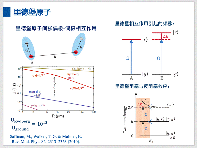 里德堡原子间的强长程偶极-偶极相互作用可以在里德堡原子气体中产生里德堡激发的阻塞与反阻塞两种经典效应,在量子光学、量子通信、量子多体模拟、量子精密测量等方面都得到重要应用。电磁诱导透明技术是改变介质光学响应的常用手段,将其应用于里德堡原子气体介质,结合电磁诱导透明技术的量子干涉效应和里德堡激发的阻塞与反阻塞效应,可将里德堡原子间的强偶极-偶极相互作用映射为强光子-光子相互作用,产生强烈的合作光学非线性效应。利用这种强克尔非线性光学效应,介绍了由两个电介质板夹着里德堡原子气体构成的三层系统模型,讨论了改变耦合场频率使得探测场经过系统时反射和透射的GH横向位移得到显著增强的现象,以及改变原子密度控制古斯-汉欣位移,并进一步展示了该方案为高灵敏位移传感器提供了一种可能实现方式。最后与参会老师进行了深入探讨交流,并对现场提出的问题做出了详细的解答。中心主任王群教授详细点评了报告,对相关问题提出指导意见,并作总结性发言。