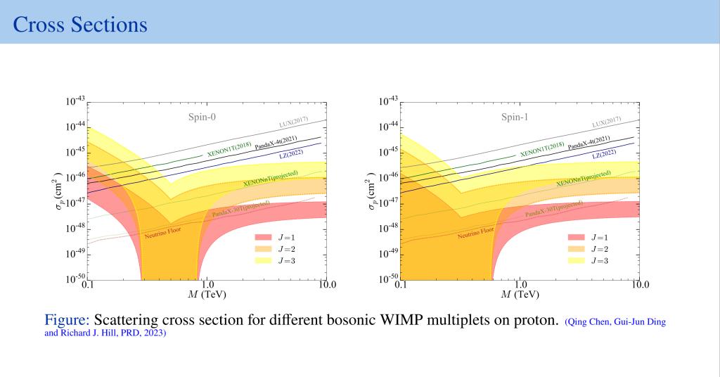 报告首先引入了基于粒子本身时空对称性的两种有效场论,对于有质量粒子的重夸克有效场论和无质量粒子的软共线有效场论,接着介绍了暗物质探测实验和暗物质候选者重的弱相互作用粒子(WIMP)。陈清博士运用重夸克有效场论构造了WIMP在电弱能标的有效拉氏量,进一步将电弱能标的物理积掉,将理论匹配和跑动到量子色动力学的核子质量能标,预言了任意自旋和电弱多重态的暗物质与核子散射的截面,并与现有实验灵敏度进行对比。最后,陈清博士与参会老师们积极讨论交流,为后续研究和合作奠定了基础。